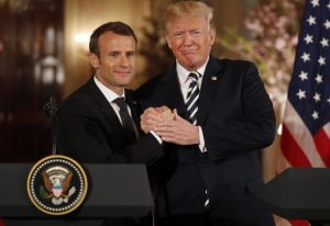 "I like him a lot." US President Donald Trump and French President Emmanuel Macron greet each other...